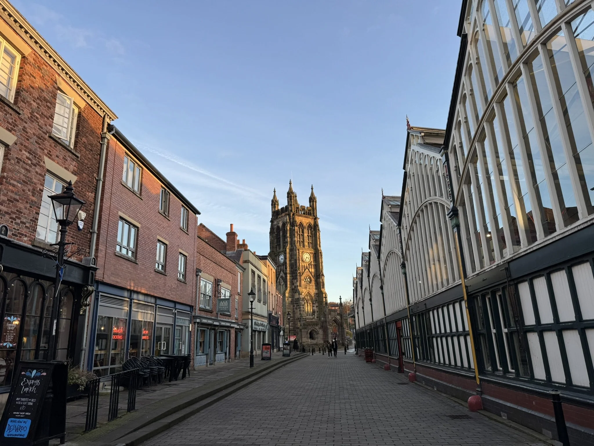 View of Stockport’s Market Hall and St Mary’s church. Credit: CW Studio